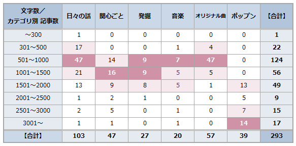 しかも、2,000文字以上の記事は現時点で41件ですが、その3分の2は文字数が多くなりがちなポップン記録ということも判明しました。